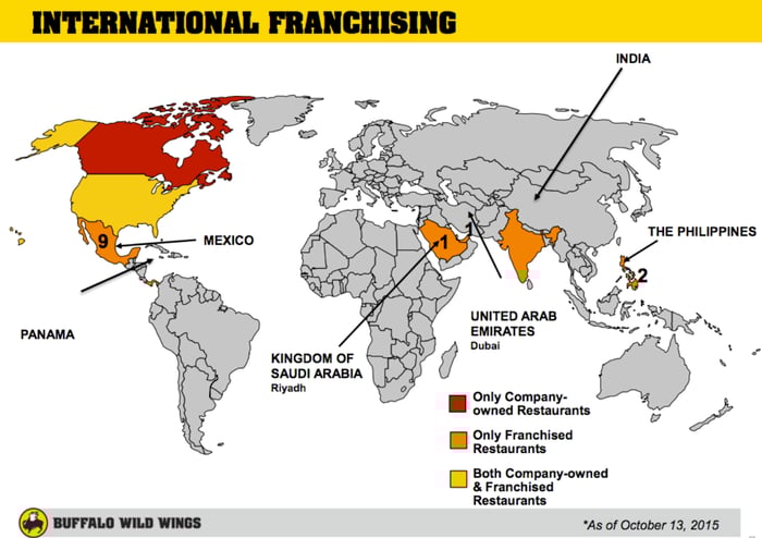 Management believes the company has enough room for nearly 1,700 units in the United States and Canada, and the company is just getting started in international markets, so this restaurant chain is still offering substantial room for expansion in the coming years.