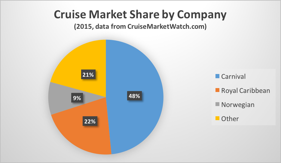 For all of its capacity growth in recent years, Royal Caribbean still booked less than half as many cruise passengers in 2015 as its largest competitor, Carnival Cruise Lines (CCL 0.91%).