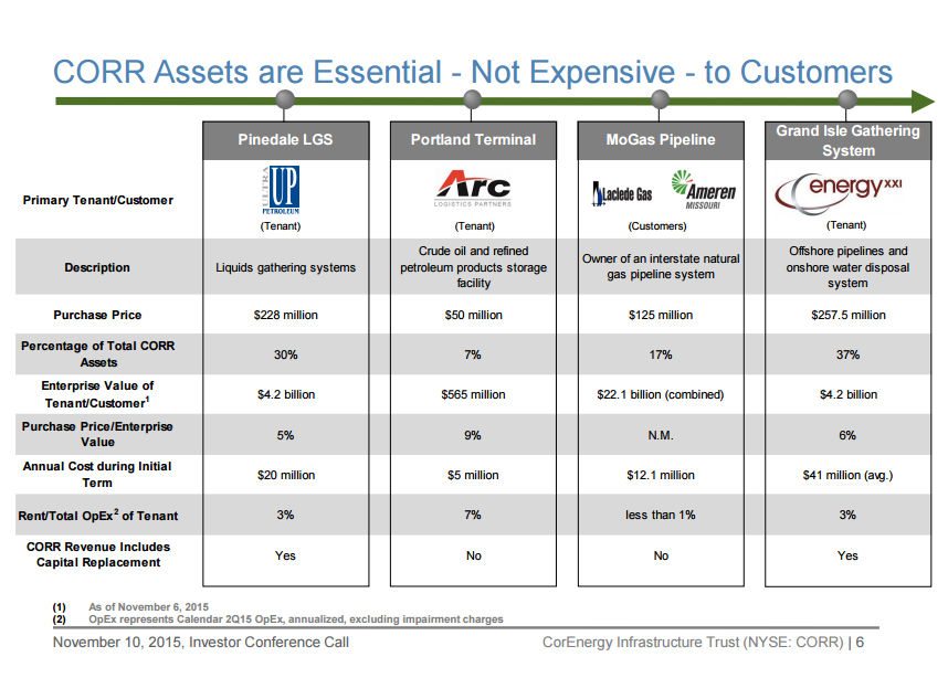 Now Corenergy and other pipeline owners will argue, and correctly so, that their pipes are integral to drillers' businesses. After all, without transportation oil and gas can't get to market. Any troubles, in the end, will likely be dealt with on a case by case basis. And while that may mean customers keep paying, it doesn't mean they'll keep paying what's being paid today.