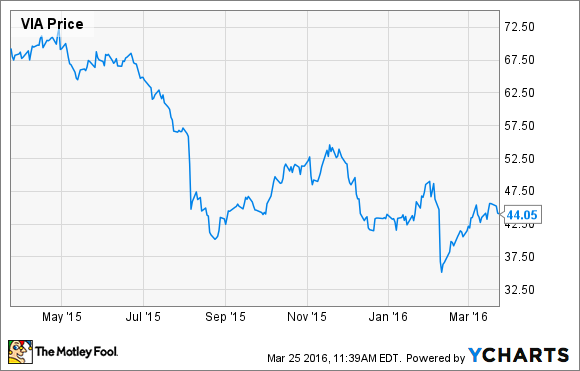 Viacom stock has not done all that well for the past 12 months. Source: YCharts.com.