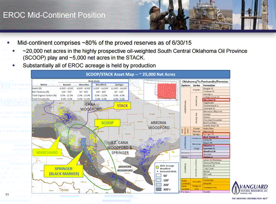 Vanguard Natural Resources initially picked up its STACK/SCOOP position when it acquired Eagle Rock Energy last year. That deal provided it with 20,000 net acres in the SCOOP and 5,000 net acres in the STACK: