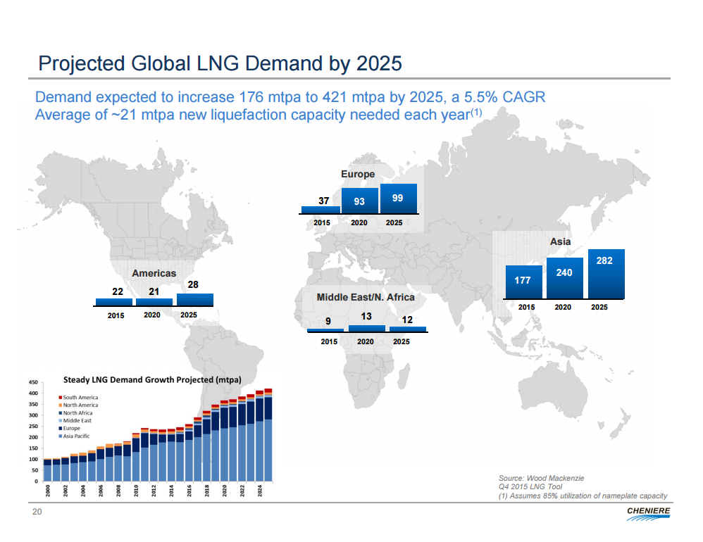When the next wave of LNG facilities is needed to meet increasing demand, the Gulf Coast will likely be a top candidate, giving Cheniere a leg up over producers in other parts of the world.