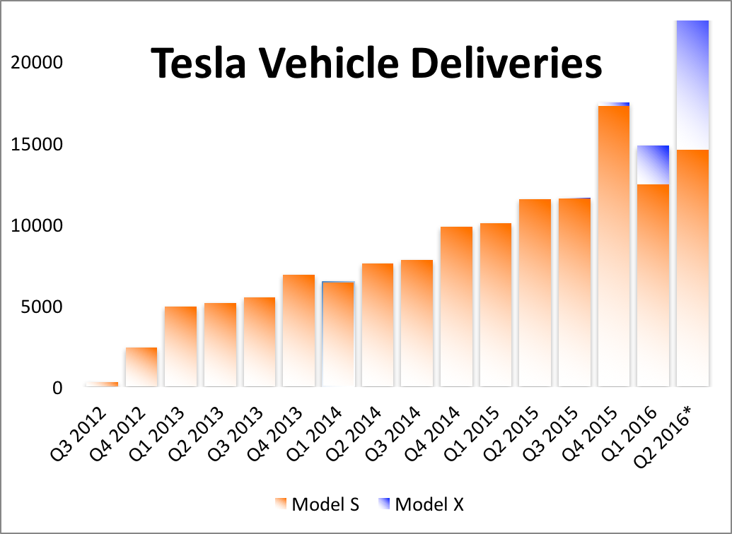 For the full-year, Tesla expects to deliver 80,000 to 90,000 Model S and Model X vehicles combined, representing about 68% year-over-year growth compared to 2015's vehicle sales. Once Model X production ramps up, Tesla expects Model X demand, production, and deliveries to rival Model S deliveries. At the rate Tesla is ramping up its production, it's looking like quarterly Model X deliveries will catch up to Model S before the end of the year.