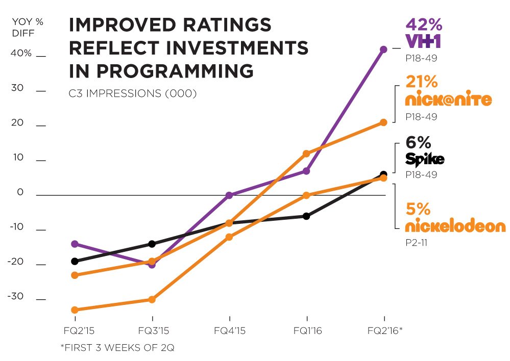 Ratings are headed higher at most of Viacom's networks. Image source: Viacom.