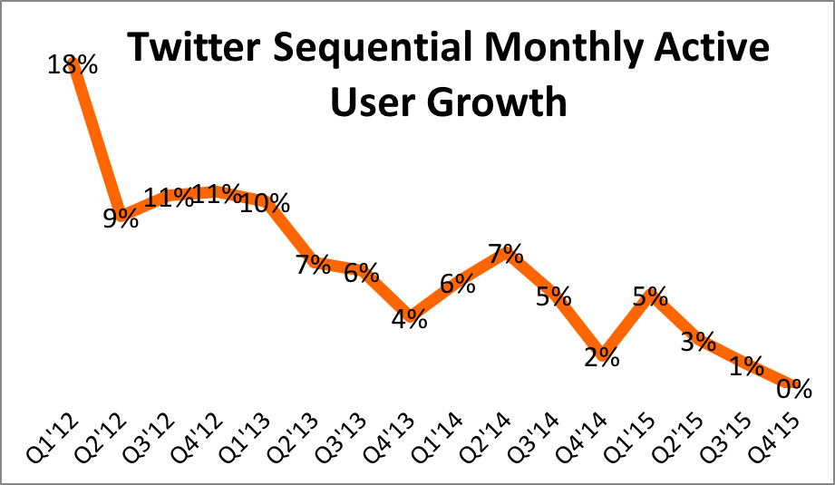 I've written about Twitter's user-growth problem more extensively here, but the problem can be quickly summed up in this chart: