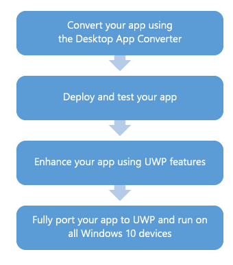 UWP = universal Windows platform. Microsoft laid out the steps for using its app converter. Image source: Microsoft.