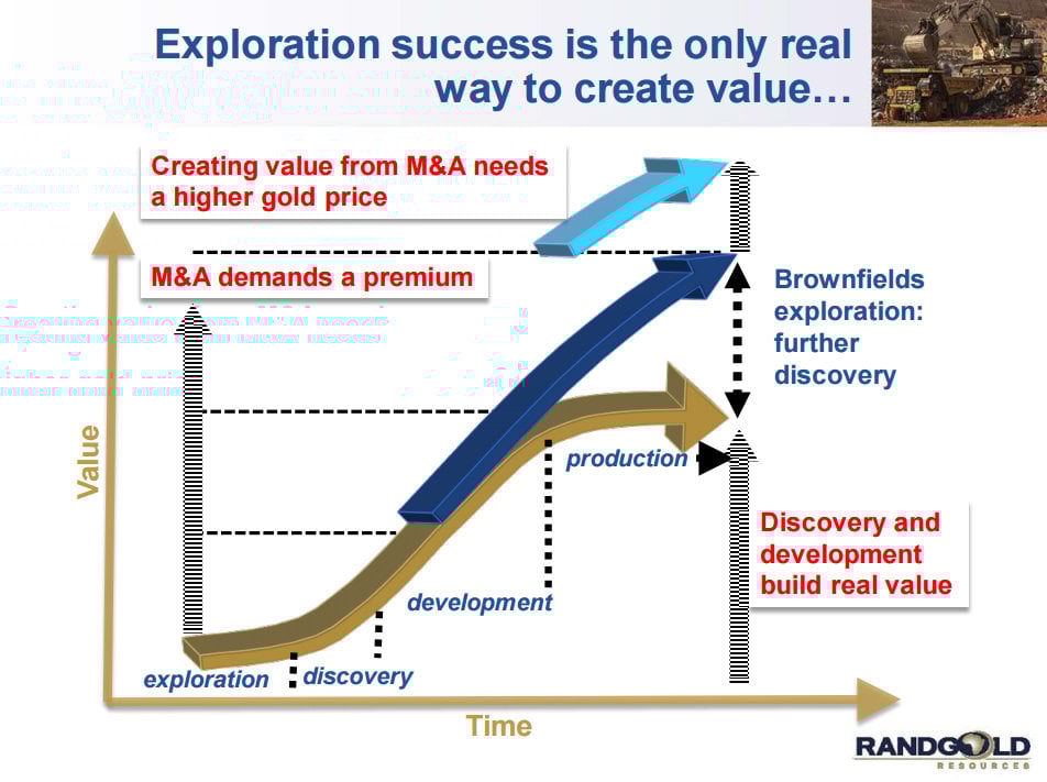 Randgold holds the view that the only way for a gold miner to create value is by focusing on exploration, which it details on the following slide.