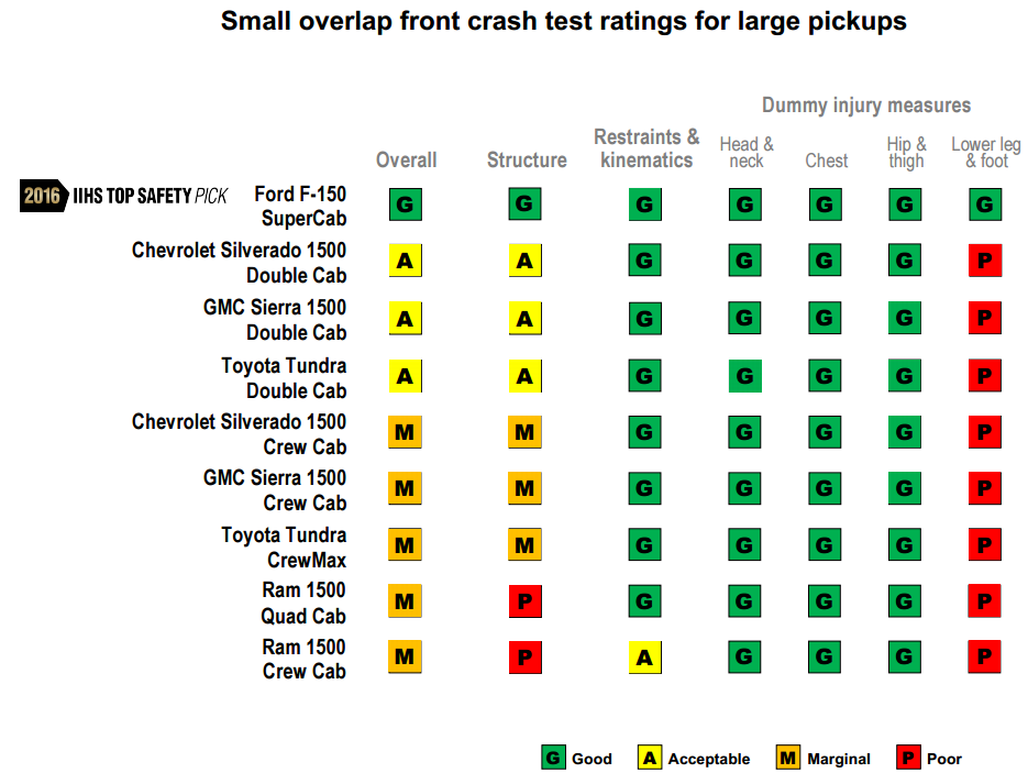 "Ford added structural elements to the crew cab's front frame to earn a good small overlap rating and a TOP SAFETY PICK award but didn't do the same for the extended cab," IIHS' chief research officer, David Zuby, said in a statement. "That shortchanges buyers who might pick the extended cab thinking it offers the same protection in this type of crash as the crew cab. It doesn't."