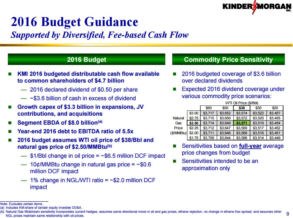 Kinder Morgan has slowly been cutting its capex budget in response to industry conditions. Initially, it expected to fund roughly $4.2 billion in capex projects in 2016. However, it has now cut that budget down to $3.3 billion.