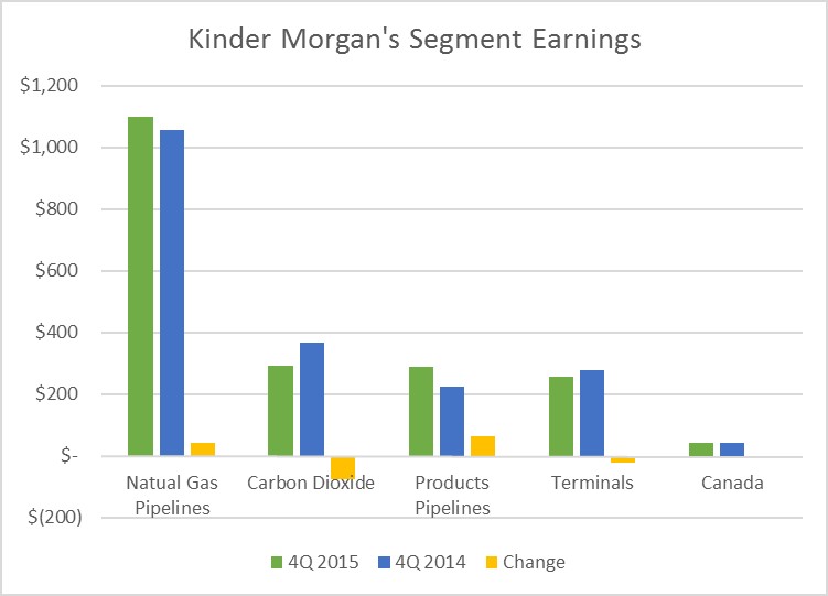 DATA SOURCE: KINDER MORGAN EARNINGS RELEASE. CHART BY AUTHOR. DOLLAR FIGURES IN MILLIONS.