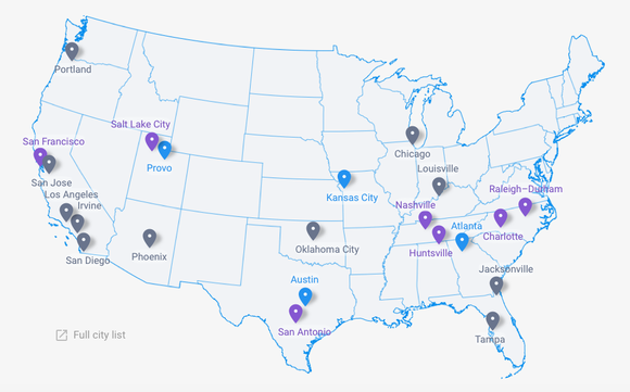 So far, Google has only entered a few cities with plans to consider a limited amount more. Image source: Google Fiber.