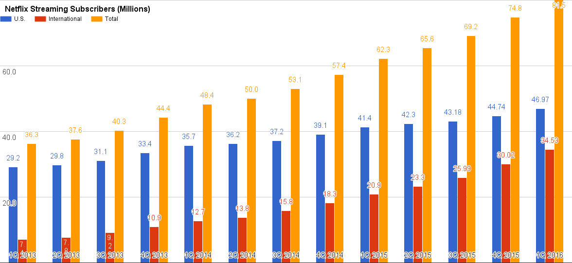 Netflix is increasingly betting on original content to build competitive strength and differentiate the service from the competition, and this is generating impressive results for the company. In fact, growth in the U.S. was substantially above the company's guidance last quarter because of the positive effect of original content debuts. Netflix gained 2.23 million customers at home, considerably higher than management guidance for 1.75 million additions during the quarter.