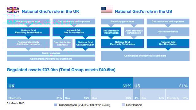 There's no way around it: National Grid is a direct play on the utility needs of the United Kingdom. Roughly a third of its revenues come from its UK electricity business, and about 30% or so is derived from its gas transmission and distribution operations. So around two-thirds of National Grid's revenues are directly tied to utility issues in England.