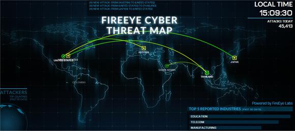 FireEye's real-time threat map. Image source: FireEye.