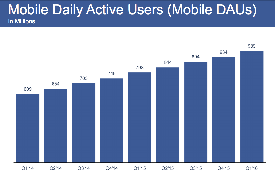 Importantly, Facebook is also making huge progress in terms of monetization. Average revenue per user was $3.32 last quarter, a 33% increase versus $2.50 per user during the first quarter of 2015.