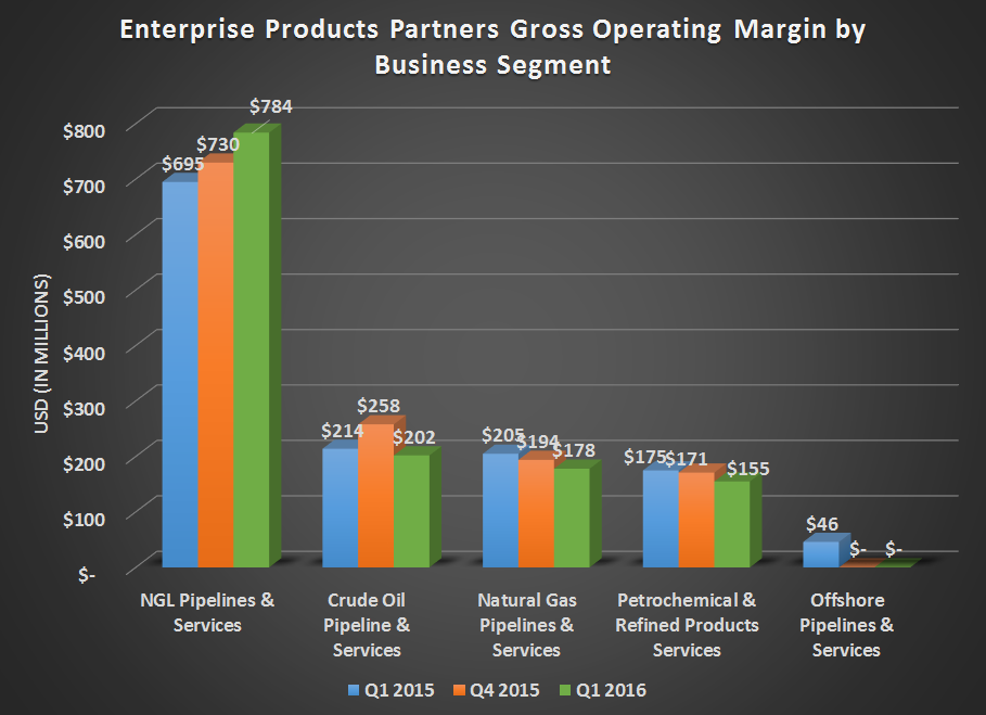 It should be noted that Enterprise sold all of its offshore pipeline assets in the third quarter of 2015; in the coming quarters, this business segment will no longer be reported.