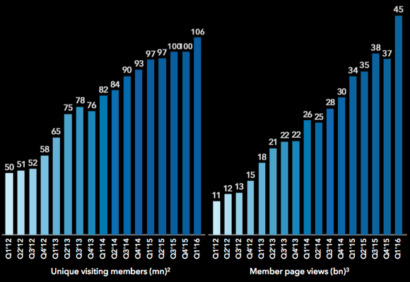 Another area of concern I had ahead of LinkedIn's report was the company's user engagement metrics. In particular, I was watching unique visiting members and member page views.