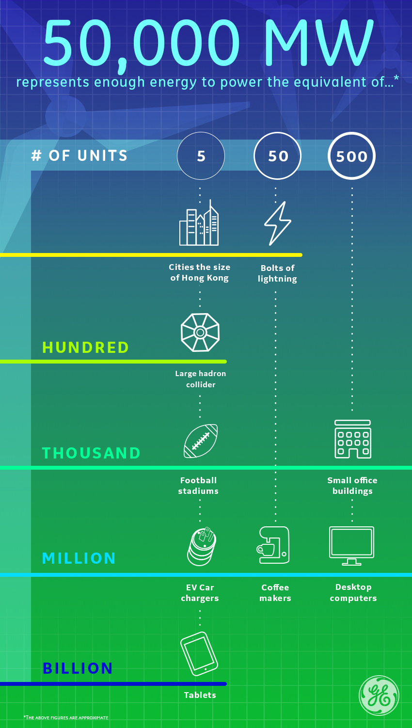 "Renewable energy has become a mainstream source of power generation," said Jérôme Pécresse, President & CEO of GE Renewable Energy, in a statement. "The industry is poised for continued global growth, and at GE, we are excited to be reaching this milestone and look forward to adding our next 50 gigawatts even faster."