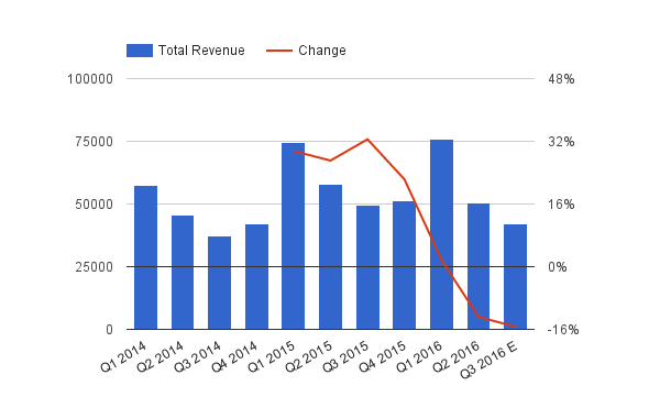 Adding to the concerns, management is expecting revenue in the range of $41 billion to $43 billion in the third quarter of fiscal 2016, which would be a 15% decline over the same period last year at the middle of the range. Understandably, the prospect for continued weakness in the coming earnings report is putting considerable downward pressure on Apple stock.