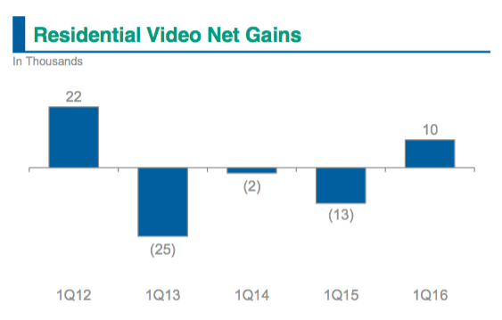 In a broad sense, Charter has actually been bucking the overall industry trend where a slight decline has been the norm. The company gained 11,000 customers in 2015, according to data from Leichtman Research Group, while its new purchase Time Warner Cable did even better, adding 43,000. That positive momentum continued into Q1 when Charter added 15,000 video subscribers. The news was also good in broadband where the company added 155,000, a slight improvement on the 135,000 it gained in the first quarter of 2015.