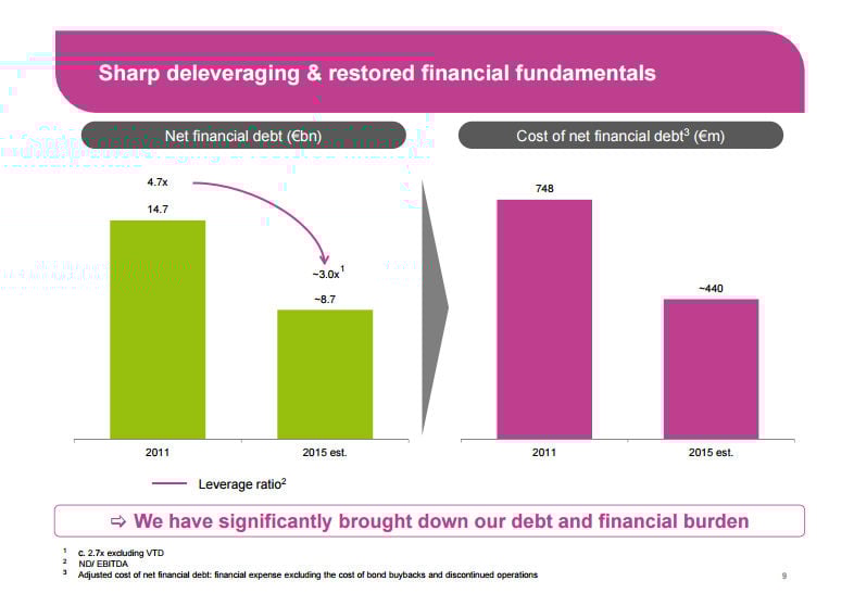 But here's the thing. At the start of 2011, Veolia's debt was around 70% of the capital structure. So not only is debt more reasonable relative to its peers today, but the company has also made great strides on an absolute level. And that reduces risk materially for shareholders.
