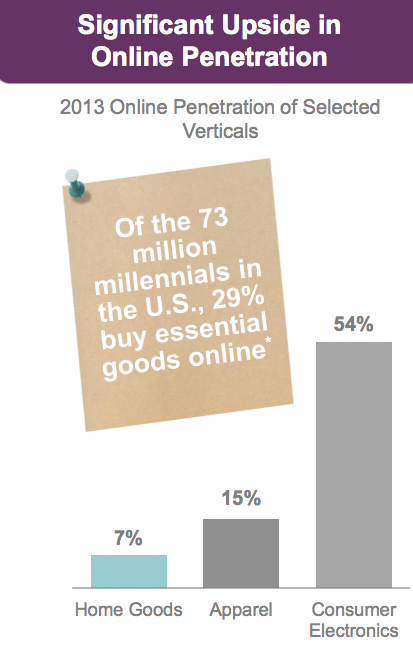 That's a big deal, because the amount of home goods bought online has tons of room for growth.