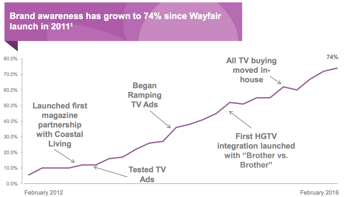 According to the company's own data, the increase in advertising has led to a sextupling in brand awareness in just four short years.