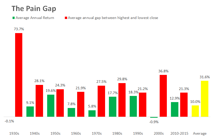The pain gap is the difference between what the market returns in a year and what it did during that year.