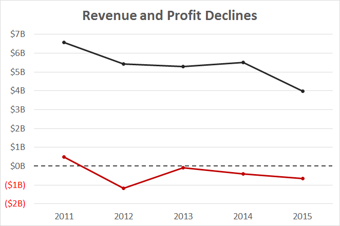 AMD's revenue hit a low point in 2015, and despite the company's optimism that it would return to non-GAAP profitability during the second half of last year, the net loss was the largest in three years.