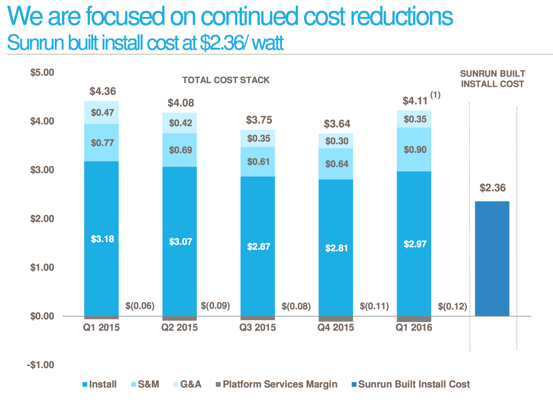 One of the keys to watching the residential solar industry is watching cost per watt and what companies say they're generating in value per watt. The discrepancy between its costs versus competition and its value generation versus competition has long been my biggest problem with Sunrun, and this quarter was no different.