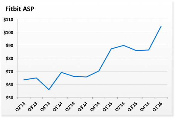 The good news is that these new products translated into a meaningful uplift in average selling prices. Make no mistake, Fitbit ASPs have been crushing it lately, soaring to an all-time high of over $104 last quarter.