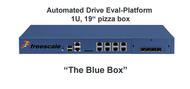 Yep, it's a blue box aptly known as "The Blue Box." Inside, you'll find all of the number-crunching power needed to make sense of a full-car sensor setup, making the Freescale Blue Box roughly comparable to NVIDIA's entire Drive PX solution.
