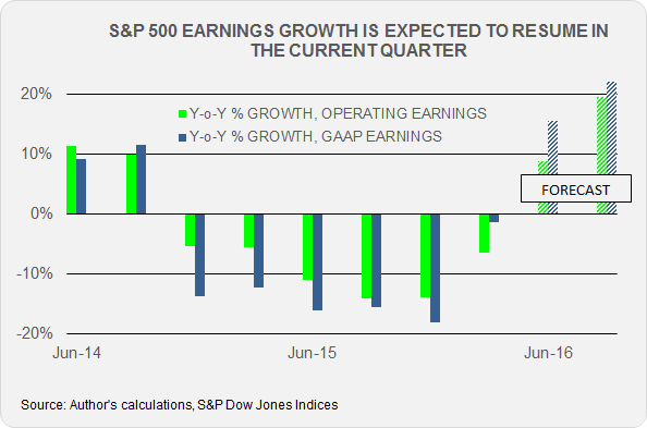 At present, the consensus estimate for the current quarter -- and for the six quarters beyond that -- implies a sharp rebound in earnings: