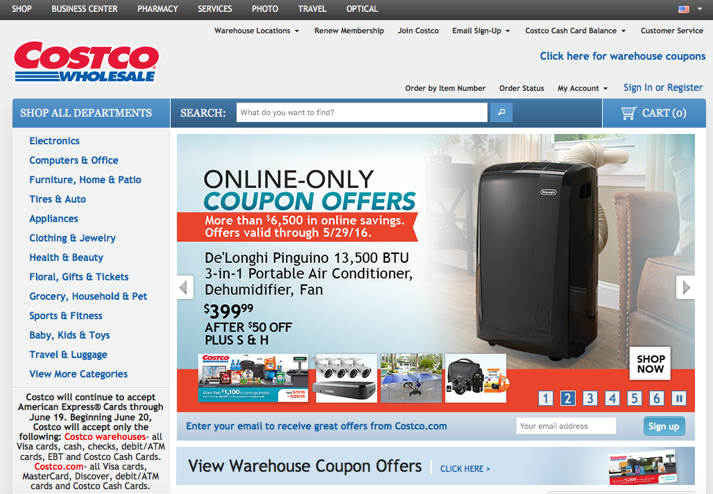 Costco's website has focused on bigger-ticket items. Image source: Costco.