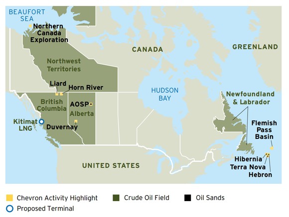 Chevron operations in Canada, Source: Chevron investor relations.