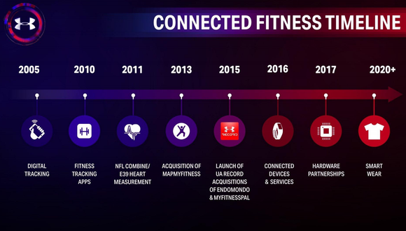 The Under Armour connected fitness growth timeline, as presented in Under Armour's Sept. 2015 investor day presentation. Image source: Under Armour.