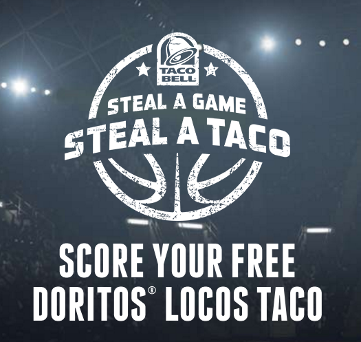 Taco Bell is offering a "Steal a Game, Steal a Taco" promotion during the final round of the basketball league's playoffs. If an away team manages to win -- no easy feat given how the remaining teams have defended home court this year -- everyone will be entitled to a free Doritos Locos Tacos on a certain date. If an away team wins any of the first three games of the NBA Finals folks will be able to claim a Doritos Locos Tacos from 2 p.m. to 6 p.m. on June 15. If an away team wins any of the remaining games, it will lead to another shot at free Doritos Locos Tacos from 2 p.m. to 6 p.m. on June 21.