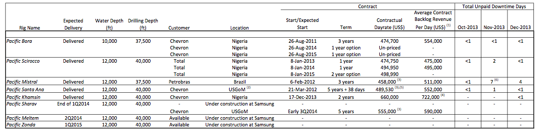 Source: Pacific Drilling January 2014 Fleet Status Report