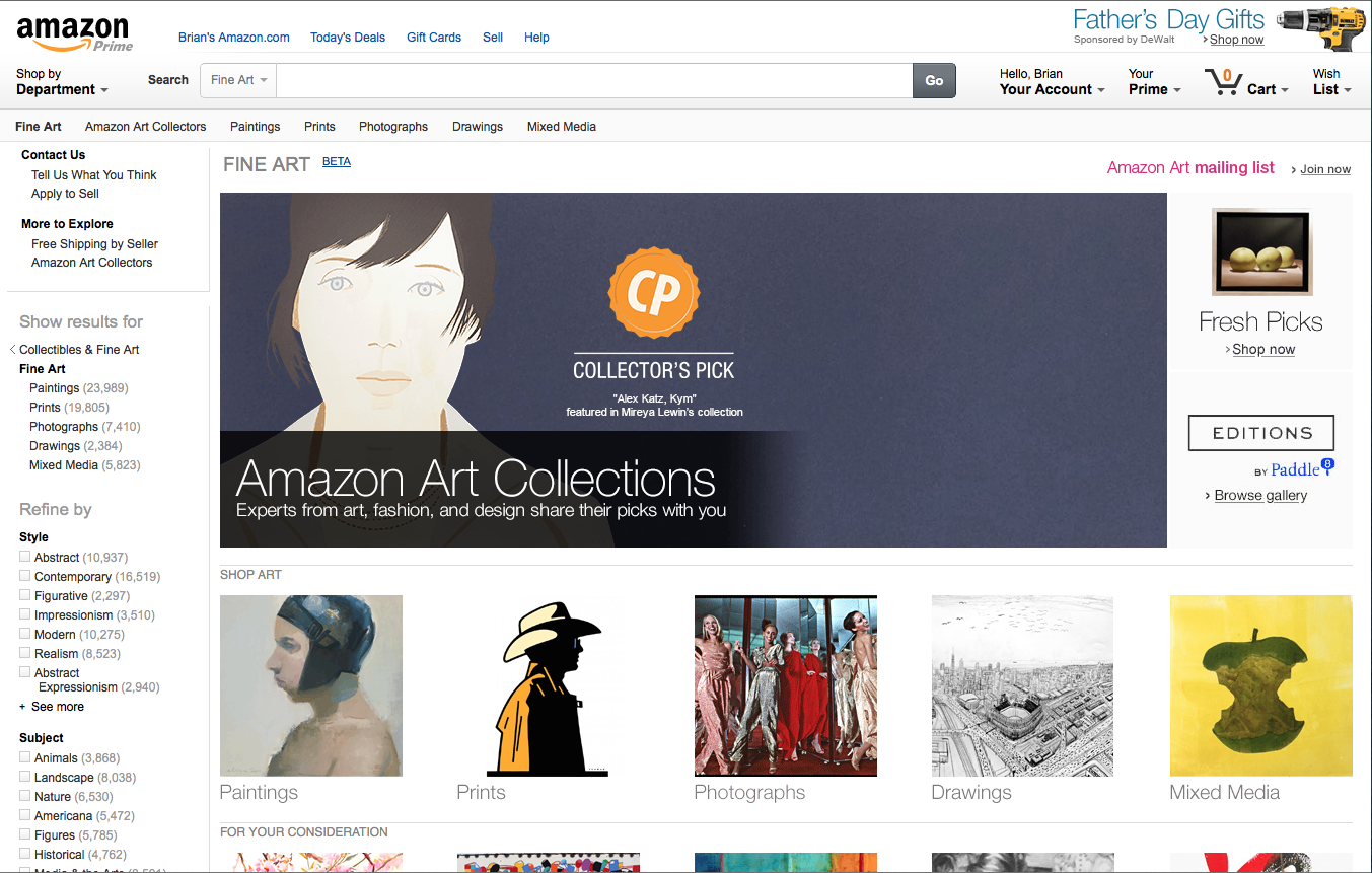 While most consumers continue to think of Amazon.com as a place to search for the lowest price on commodities such as books or DVDs that are sold by any number of retailers, Amazon.com is also inching into eBay's territory by expanding its website to feature one-of-a-kind items such as fine art.