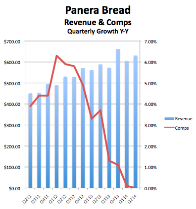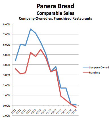 It doesn't matter who's minding the store, seas are only heading in one direction. Data: Panera Bread quarterly SEC filings
