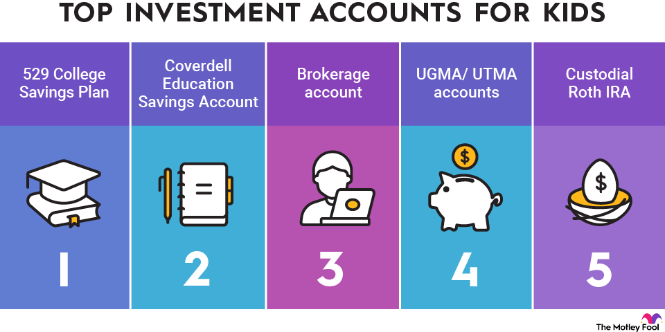 There are several options for opening investment accounts for kids. Trying to decide among the numerous choices may feel overwhelming, but these five accounts are worth particular attention depending on various factors and financial goals. Choosing any of these options as opportunities to teach kids about how to invest money is a valuable way to set them up for a lifetime of prudent financial planning.