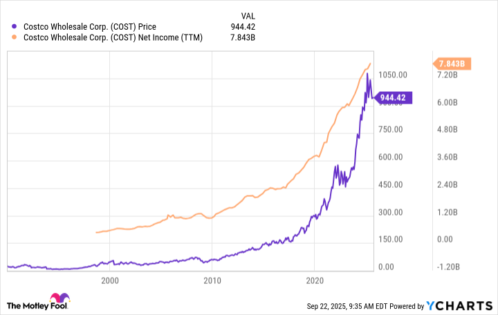 Perhaps most impressive is how Costco's earnings have increased over time. And those higher profits have driven the stock higher, too.