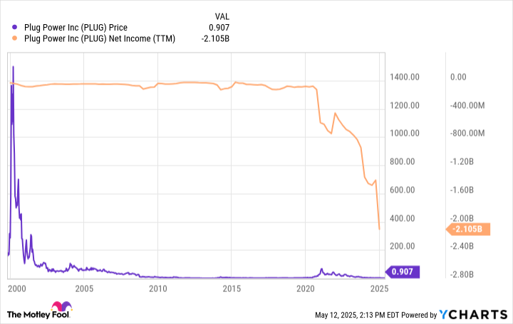 Profitability is a big driver of share price growth over the long term. Unfortunately, profitability has proven elusive for Plug Power. That has weighed on its share price over the years:
