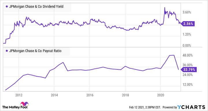 Since the end of the 2008 financial crisis, JPMorgan Chase has increased its dividend 27-fold, which has played a significant role in its performance charted above. Management and the company's board of directors have been increasingly prioritizing the return of profits to investors for many years.