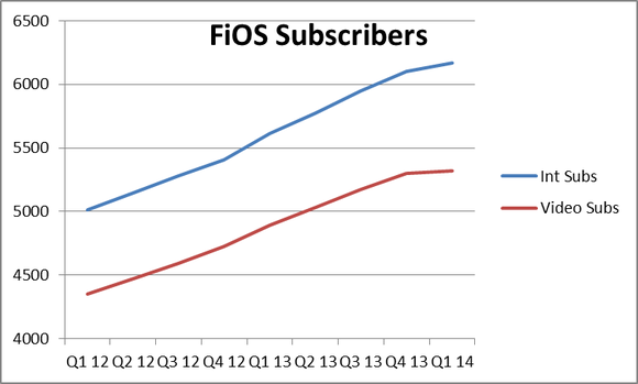 FiOS has already become a major revenue stream for Verizon. Between 2012-2014, the total number of FiOS subscribers has risen by approximately 24% (over 11% per year). In the three months ended March 31, 2014, FiOS generated nearly $2.9 billion in revenue, roughly 75% of Verizon's total consumer retail sales, and nearly 10% of its total revenue.