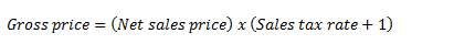 In most states, a sales tax is charged in addition to the cost of any item you purchase. The total price you actually pay for a purchase is known as the gross price, while the before-tax price is known as the net sales price. If you know the sales tax rate and the gross price you paid, you can determine the net sales price by the following formula.