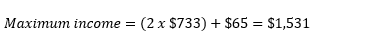 So, if you're an individual and your SSI benefit is $733 per month, your benefit will go to zero if your income is $1531 or higher if the income is from working.