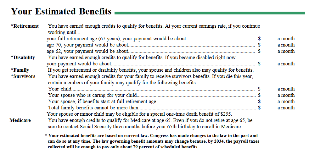 Here's a screenshot from my own Social Security statement to give you a better idea of the information on it: