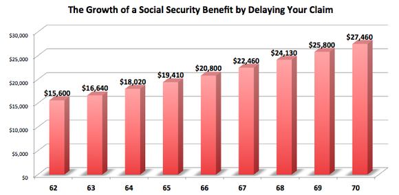 What alternative do you have? If you are able to and you continue working, you can delay claiming Social Security. If we assume a hypothetical retiree claims Social Security at 62 and gets $15,600 per year, look at how those payouts change over time given a later claim date.