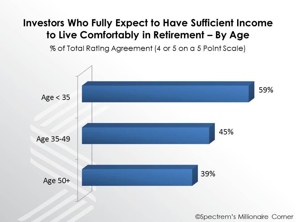 This is consistent with a 2013 Spectrem's Millionaire Corner retirement plan participant study that found younger participants significantly more confident than their older counterparts that they will not outlive their savings in retirement.